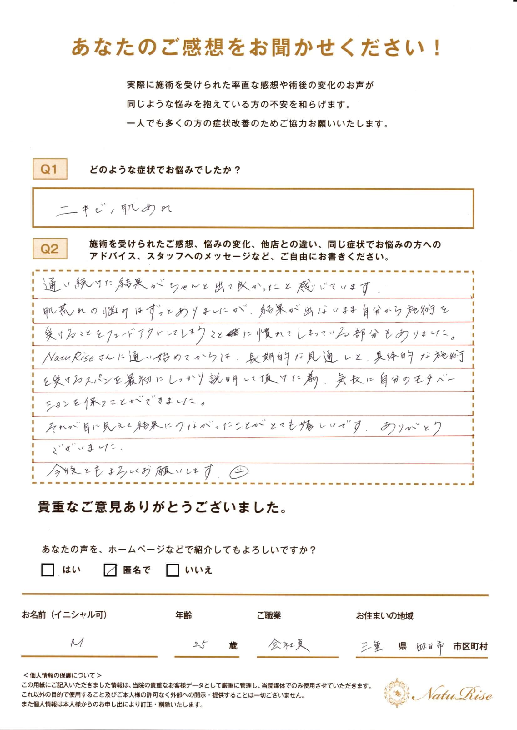 肌荒れの悩みはずっとありましたが、結果が出ないまま自分から施術を受けることをフェードアウトしてしまうことに慣れてしまっている部分もありました。